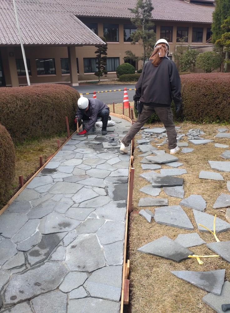 今回の石貼り工事に女性職人さんがお二人頑張っておられました。
