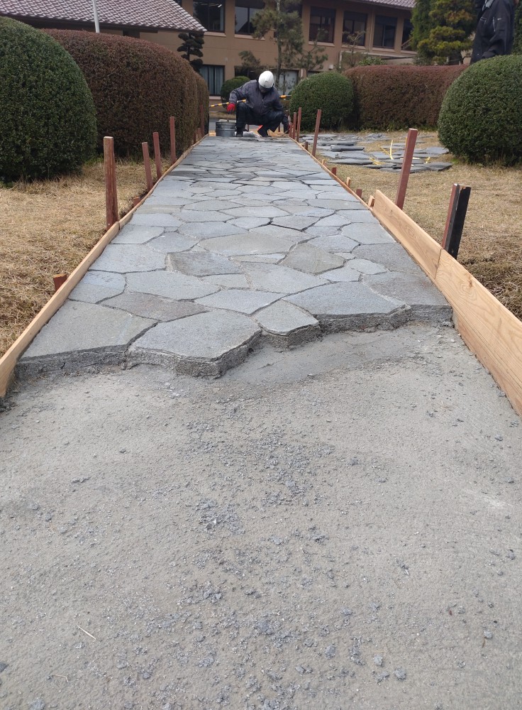 コンクリートで通路を造られていましたが、通路に石を敷きたいとの要望があり弊社小林建設が承りました。