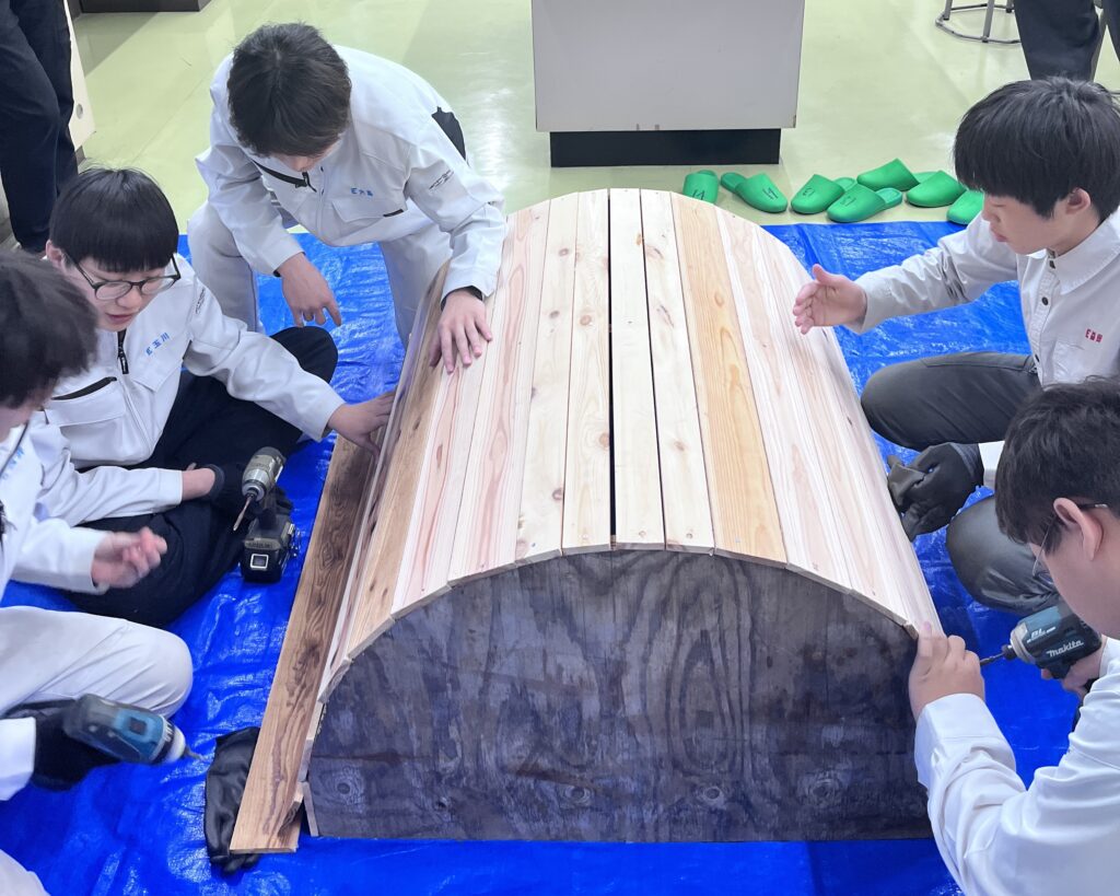 生徒は10名 あらかじめ準備しておいた窯の木枠を完成させました。