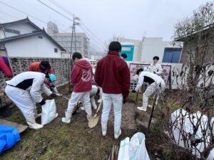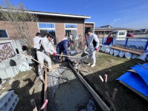 生徒の号令のもとに始まりました ピザ窯作成計画 地元高校生との共同作業。