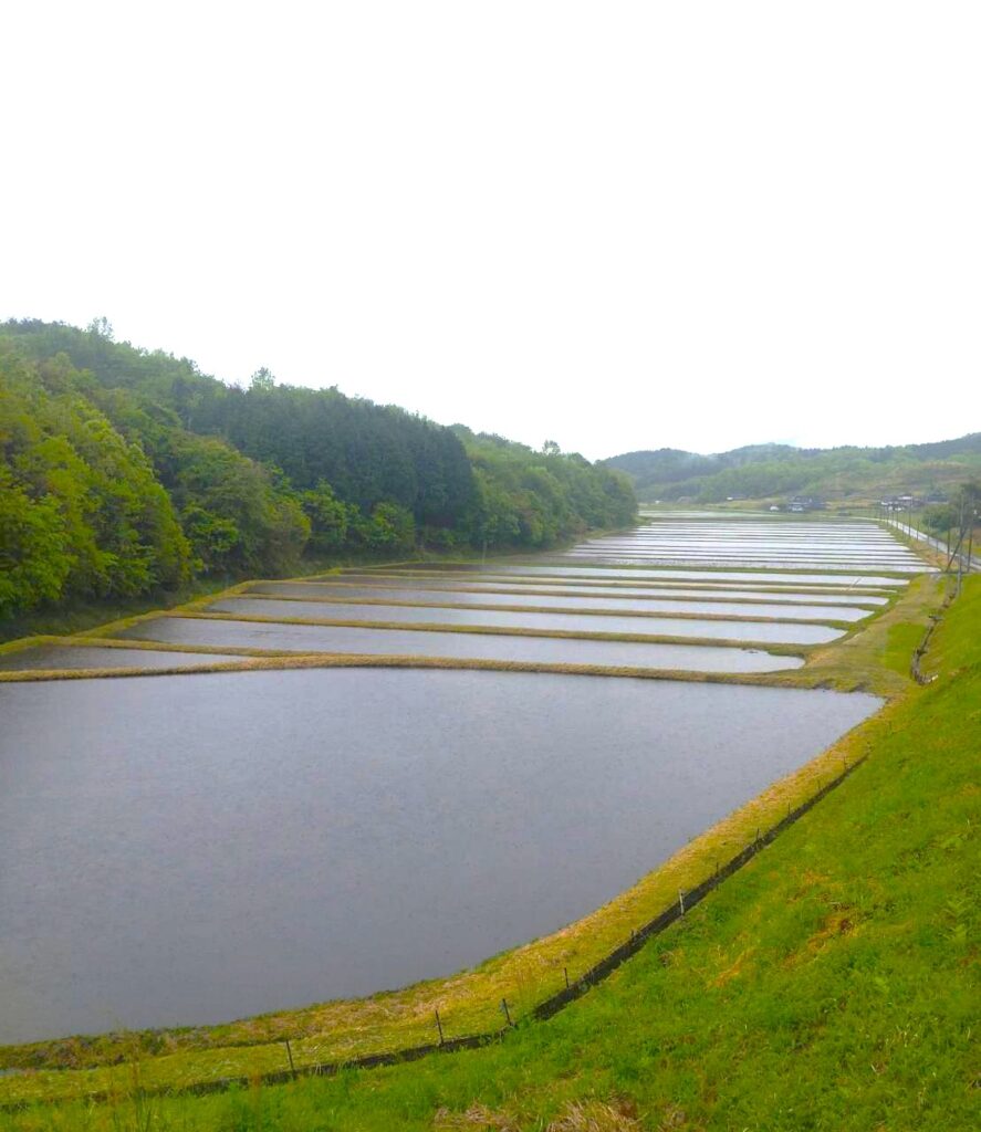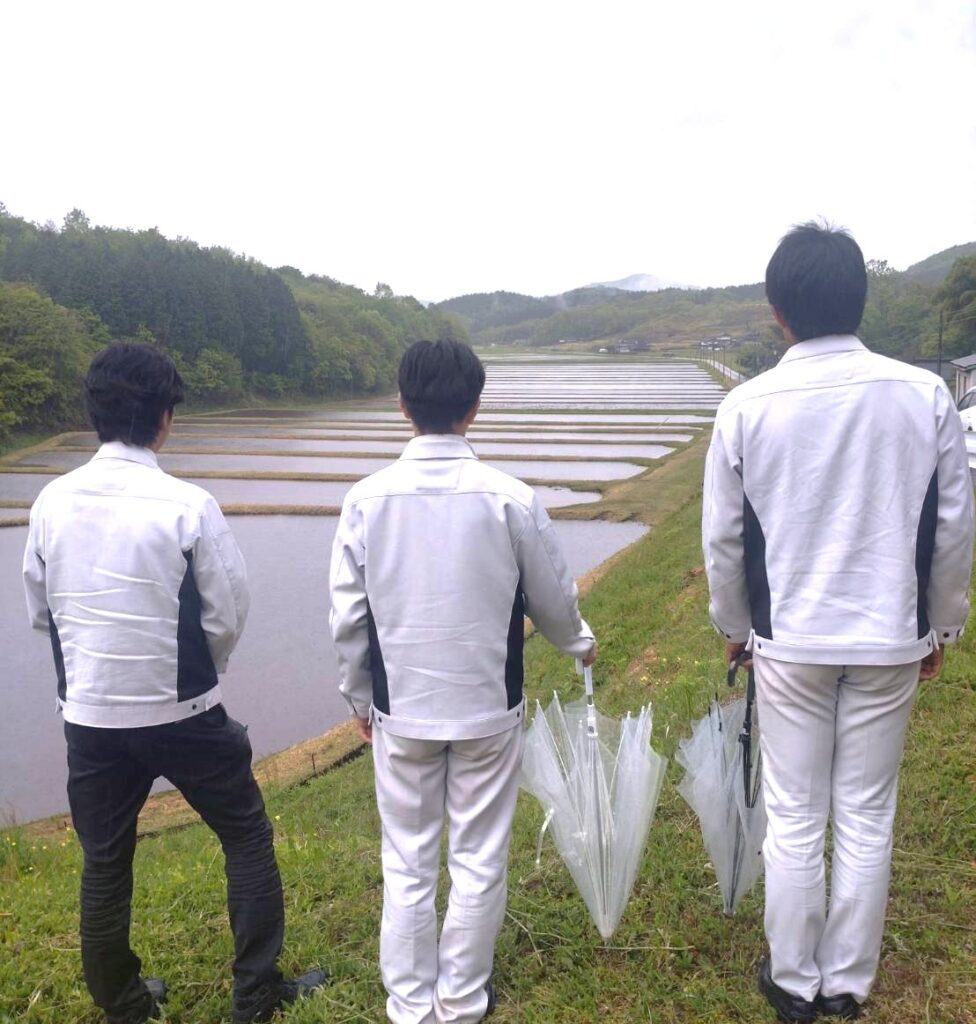 見てくださいこの高校生二人の雄姿を! とある田園風景の棚田を見ながら、